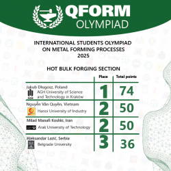 I would like to express my sincere gratitude to Professor Mihajlo Popović for the opportunity to participate in the Students’ Olympiad in Hot Bulk Forging. During my preparation for the competition, I was introduced to QForm software for the first time and quickly realized that it is an exceptionally powerful and intuitive tool for understanding and analyzing metal forming processes.