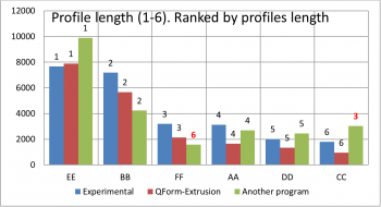 Profile length tendency comparing with experimental results