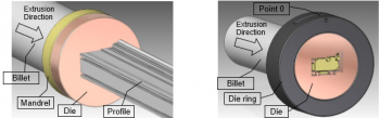 The scientific Benchmark test verified the possibilities of the simulation software to predict the exit velocity from the die orifices. The die had got 6 orifices and material flowed through 6 different bearings. The variation was in the length and choke angle of the bearings. Also they measure the exit temperature of the all rods that exited from the die orifices.