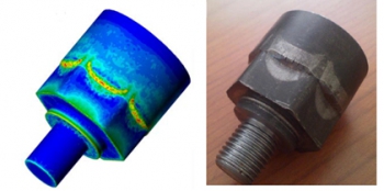 A modified Cockcroft-Latham criterion is now available in QForm as a subroutine that shows very good accuracy in tests for different practical cold forming processes. Cold forming technology provides production of net shape parts that require no, or very little, machining. Meanwhile one of the technological problems of cold forming is fracture of the workpiece during production. The use of reliable fracture criteria implemented in QForm metal forming software can help predict possible cracks and find ways to avoid them.Damage factor distribution predicted by modified criterion Cockcroft- Latham-Oh and actual cracks in the cold forged part