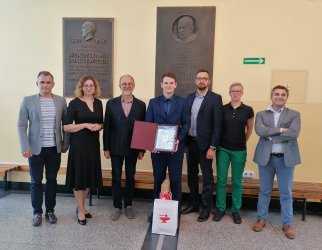 AGH Team from the left to the right: Dr Krzysztof Muszka; Dr hab. inż. Aneta Łukaszek-Sołek; Dr Nikolay Biba; Mr. Grzegorz Ficak; Dr inż. Łukasz Lisiecki; Dr inż. Sylwia Bednarek; Dr inż. Piotr SkubiszAwarding of Mr. Grzegorz Ficak