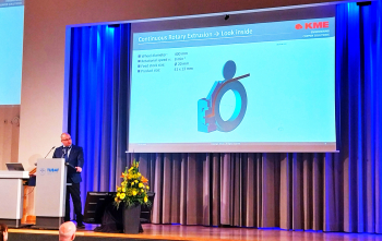 KME, a customer of prosimalys, is a very satisfied user of QForm UK, so that they were presenting some of their simulation work on MEFORM. Mr. Kleemann demonstrated the simulation of the extremely challenging process of rotary extrusion and hollow extrusion processes with rewelding of the material. QForm UK easily simulates these process which needs a lot of stable remeshing while featuring very fine geometrical details.