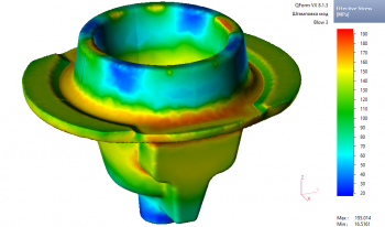 The optimization of hammer forging technology using QForm simulation software is shown in this video. The technology of stub axle forging consists of 4 hammer forging operations: drawing, upsetting, flattening and final forging. Formation of the laps occurs in the initial technology as shown in the first stage of the video. Then the upsetting and flattening height have been increased to avoid defect formation. The second stage of the video shows that the forged part does not have any defects after optimization.